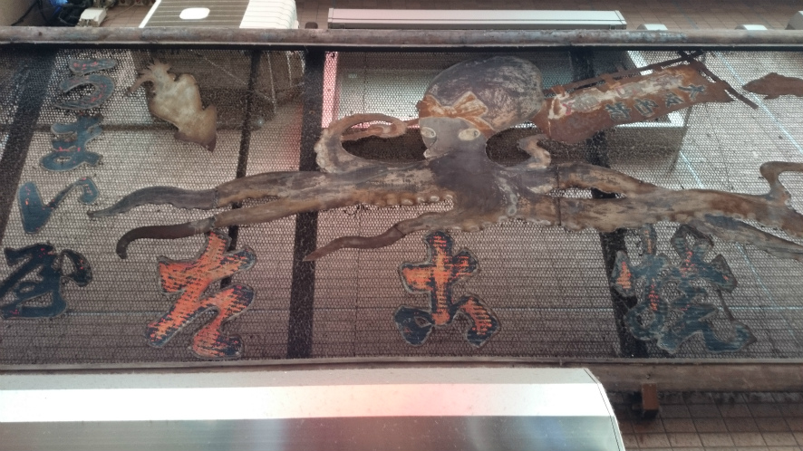 店頭でたこ焼きを焼いてるんですけど、そのための機械がすごい年代物でした。たこ焼きを買って扇町公園で食べてみたんですがここのたこ焼きは硬いです。私の好みからすると焼きすぎてしばらく放置したレベルの硬さなんですがそのへんは好み次第ですね。