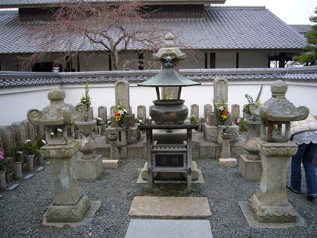 ちょっと隠れてますが、真ん中のでかいのが大石内蔵助の主君?の浅野内匠頭のお墓で、