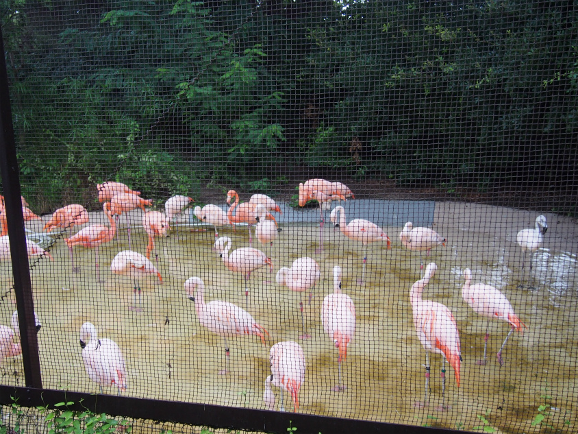 中に入るとまずはフラミンゴを発見細かいネットになっているのでちょっと見づらいですが色が綺麗です。