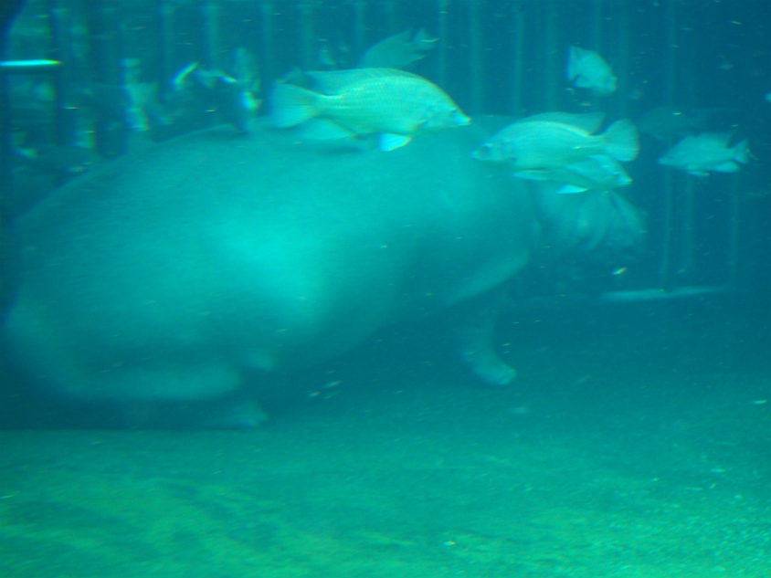 水面から顔を出しているカバを見ることはどこの動物園でも多いですが、完全に潜っている状態を横から見ることができるのは珍しいんじゃないでしょうか。
