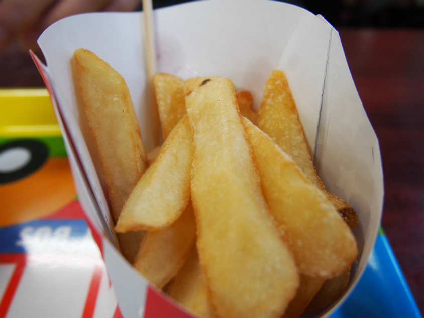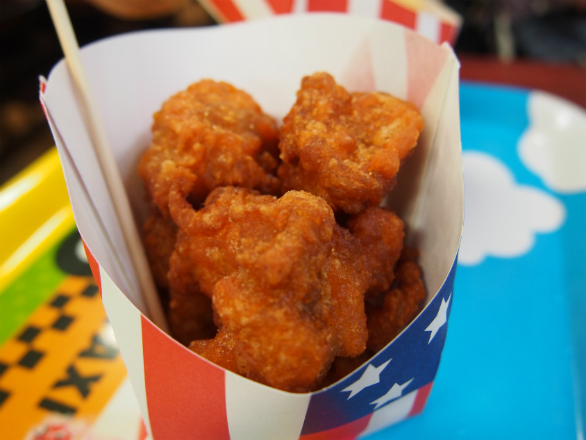 おやつには定番の唐揚げとポテトを食べました。味はまあ期待してはいけませんが普通に食べれますよ。