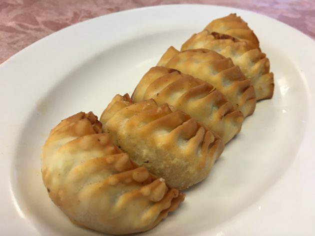 最初に出てきたんはチーズ揚げ餃子です。食べてみた感じは餃子って言うよりなんかスナックっぽい感じ。味は正直チープです笑