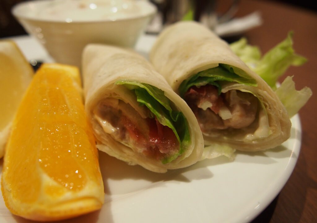 メインの料理はトーストとかじゃなくてチャパティロールって言うエスニック料理みたいです。僕はヘルシープレートを注文。