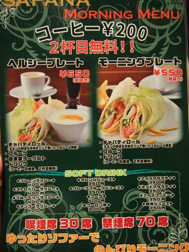 とりあえずモーニングのメニューを見てみましょう、料理は2種類でヘルシープレート650円とモーニングプレート550円です。違いはヨーグルトがついてるかどうかだけですね。