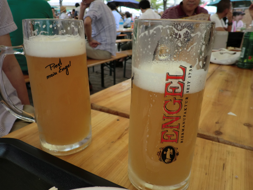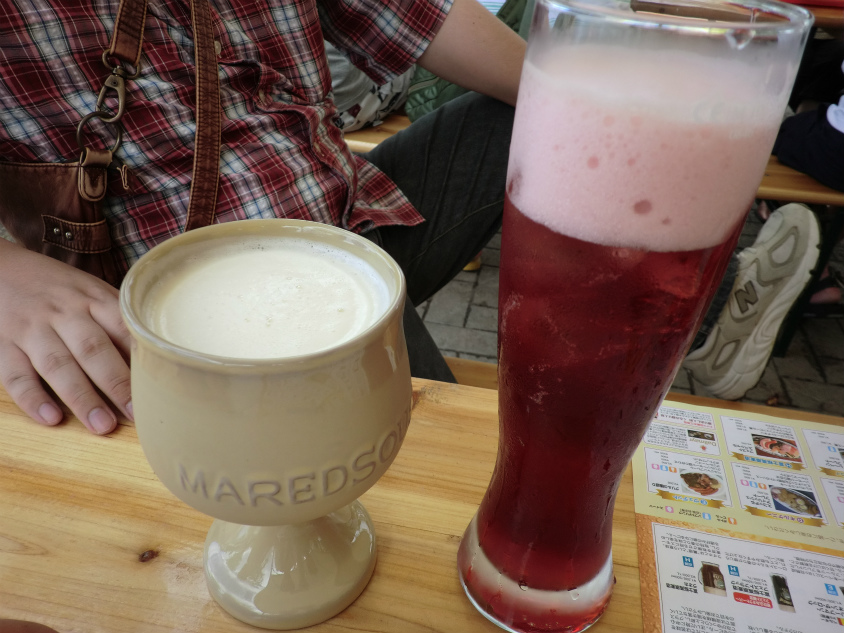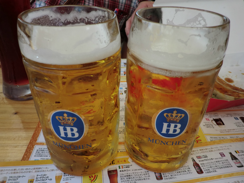 これは僕とけいの2杯目のビールです。左の変なジョッキが僕のです。