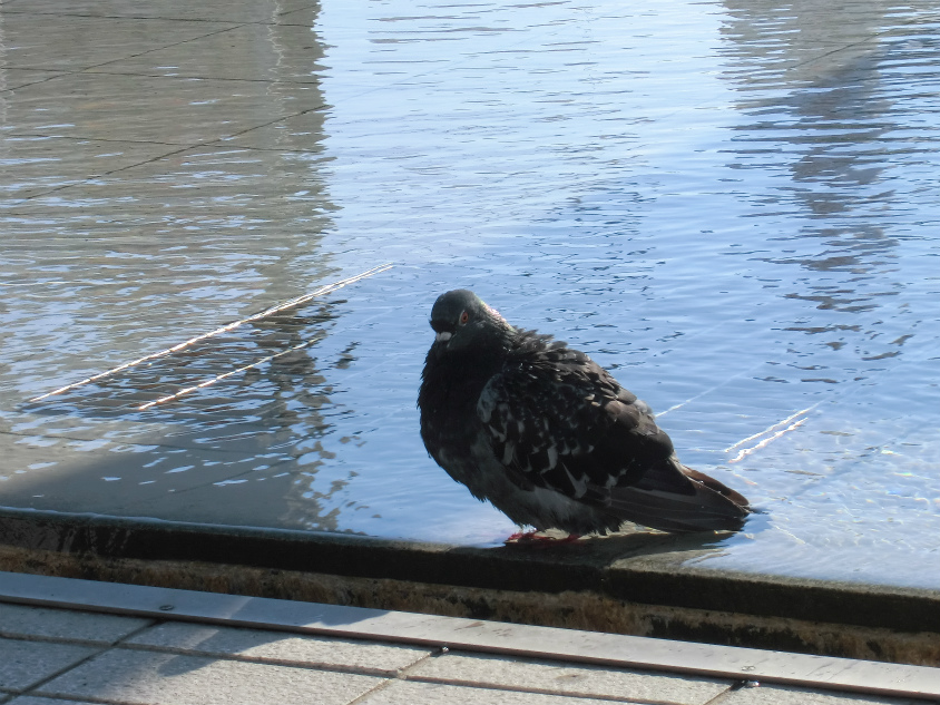 駅前では鳩が行水していました。こんなシーン初めて見ました。