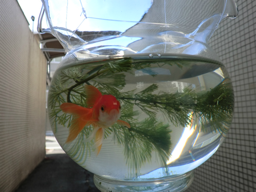 実はこれ宙づりになっています。これ金魚大丈夫なのか?