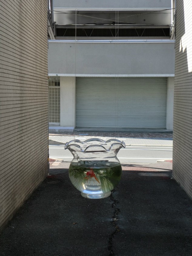 途中の建物の間に金魚鉢を発見しました。