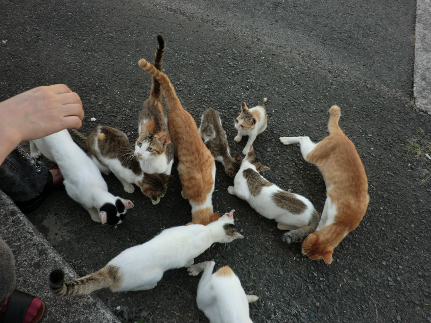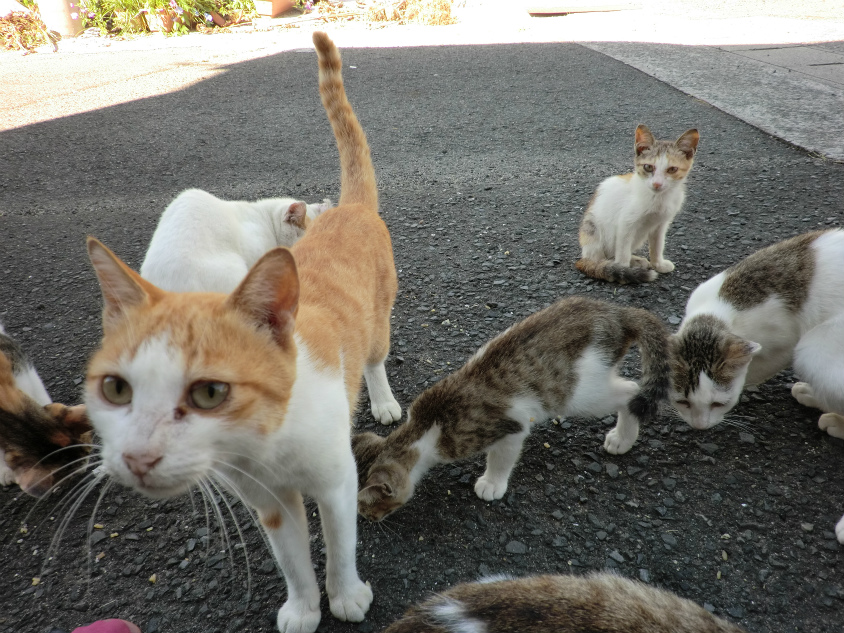 先ほどよりもさらにネコが寄ってきました。