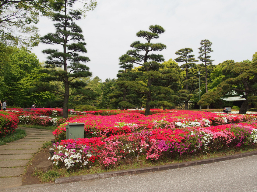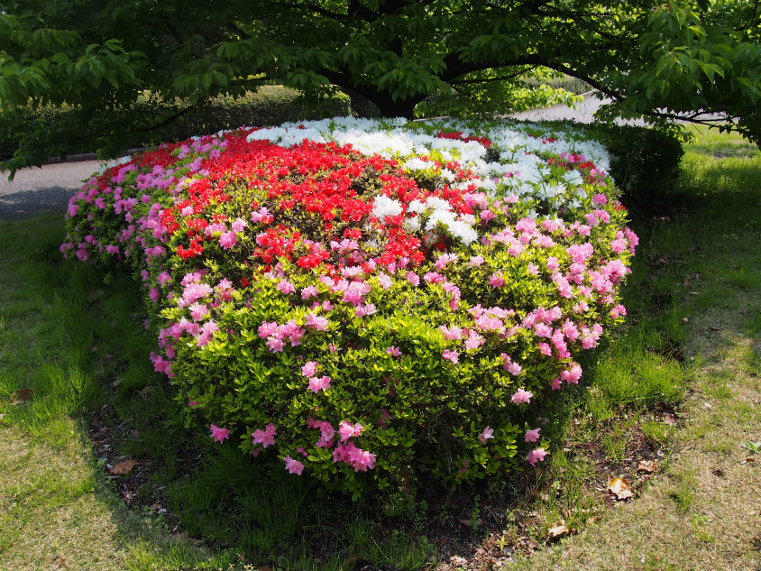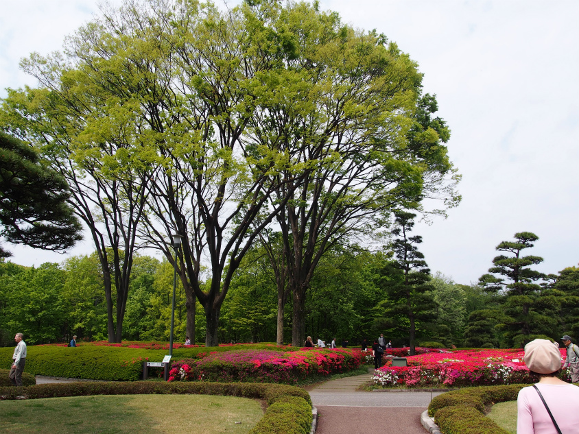 それから芝生広場みたいな場所の横を通って次の場所へ。色んな場所でツツジが綺麗です。