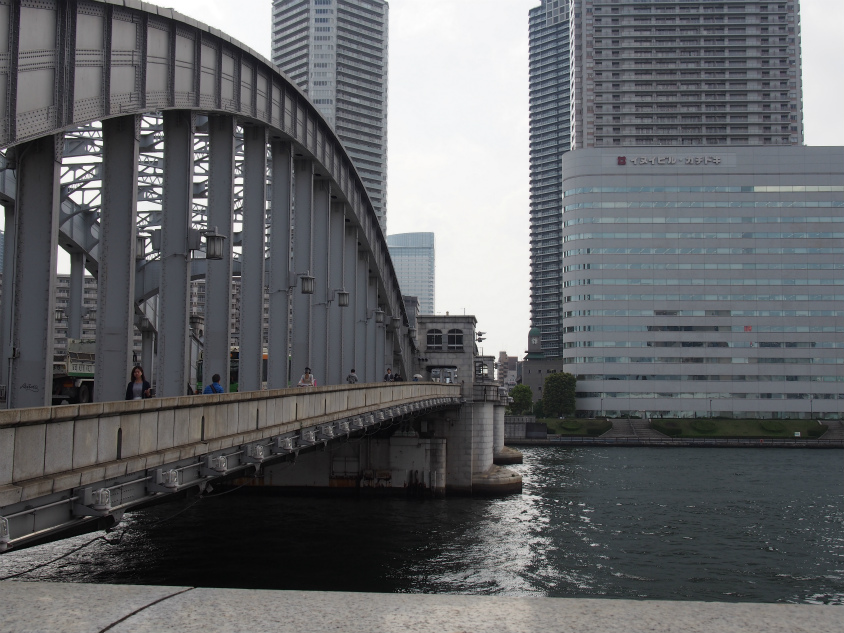 昔は真ん中から跳ね上げて船が通れるようになっていた橋ですね。