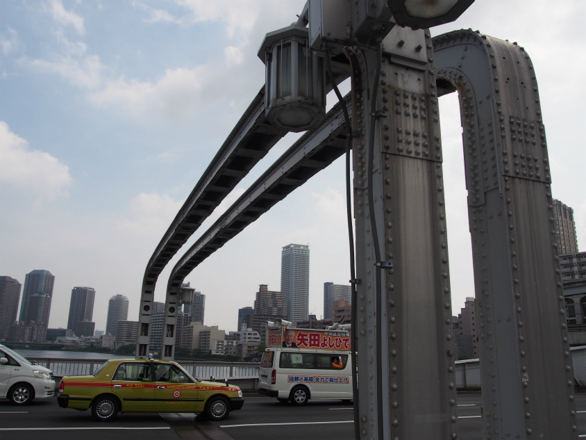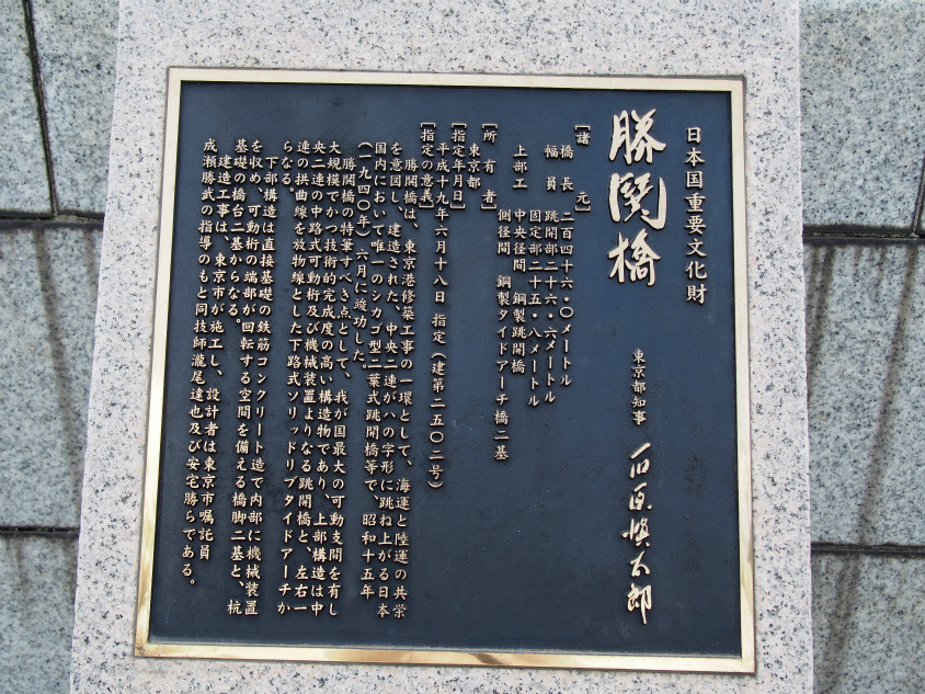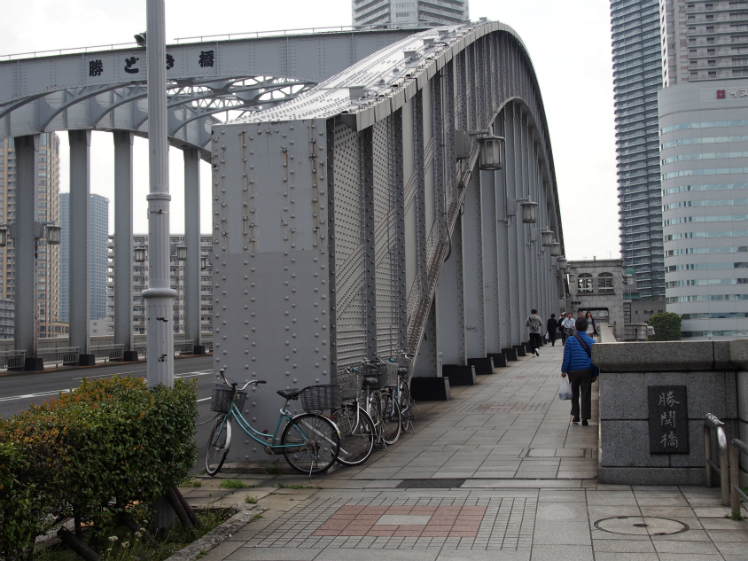 築地市場に行った後、そのまま帰ろうかと思ったのですが、ふと道路上を見ると勝鬨橋の看板が立っていました。