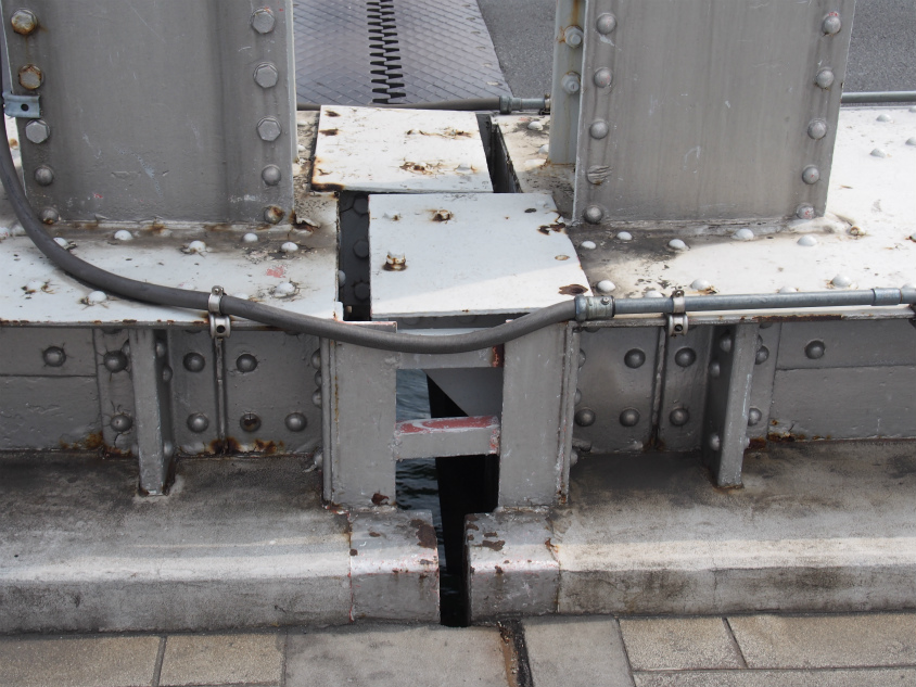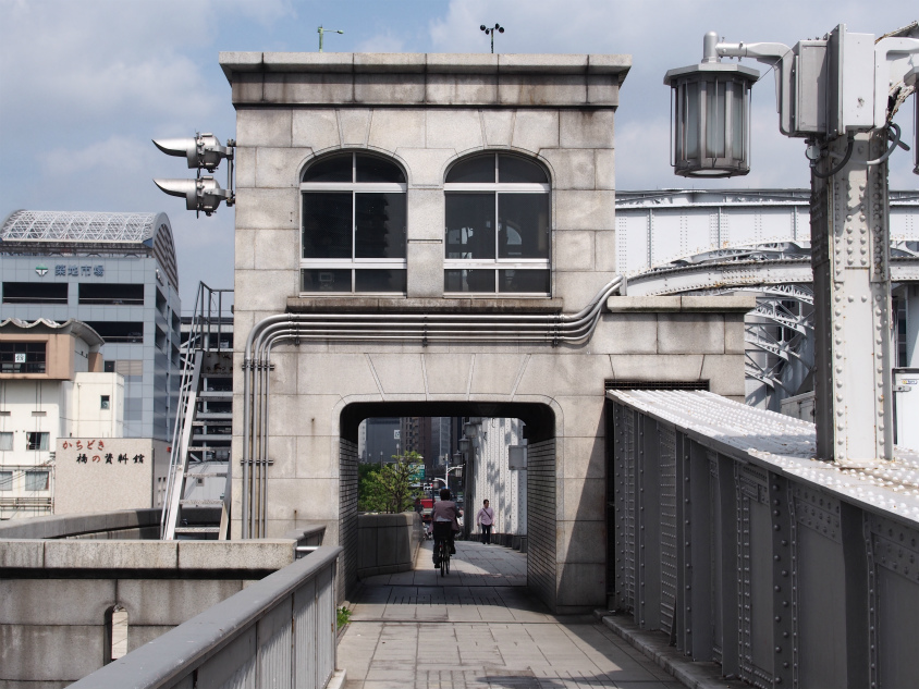 昔は真ん中から跳ね上げて船が通れるようになっていた橋ですね。