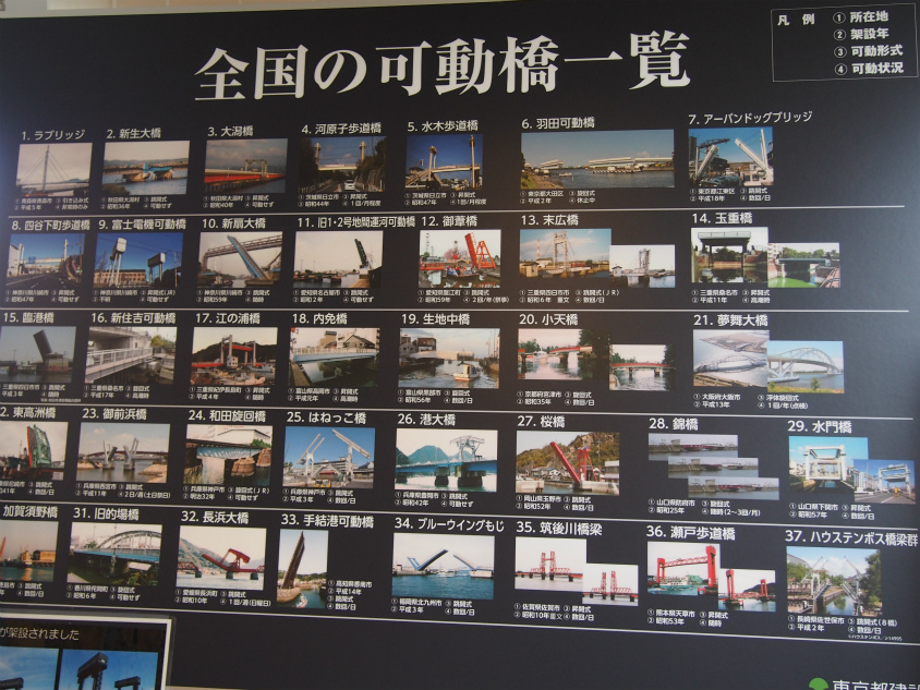 全国の可動橋がパネルで一覧になっていました。37個もあるんですね。