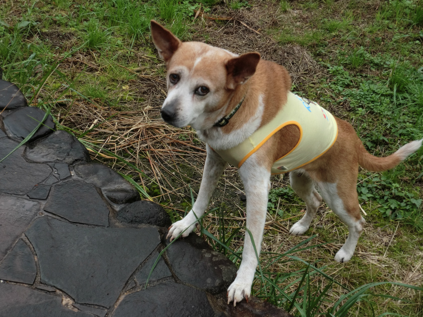 降りるときはうれしそうなのに、上るときはこっちに助けを求める眼差しのレナ