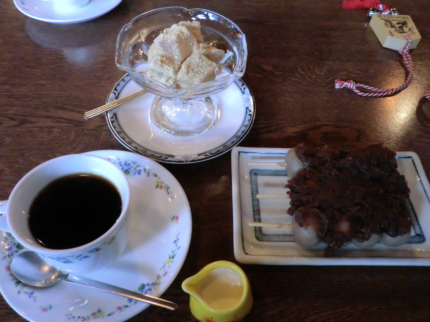 そばをおなかいっぱい食べた後のそば団子とわらびもち