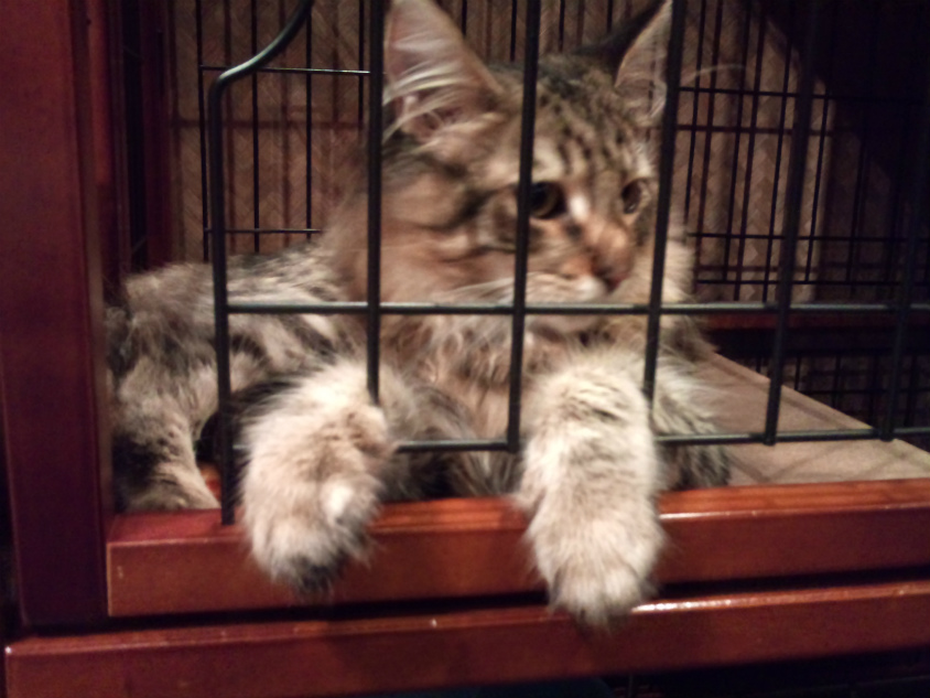 この子は少しおなかを壊していたらしく、餌の間はケージの中に入れられてました。