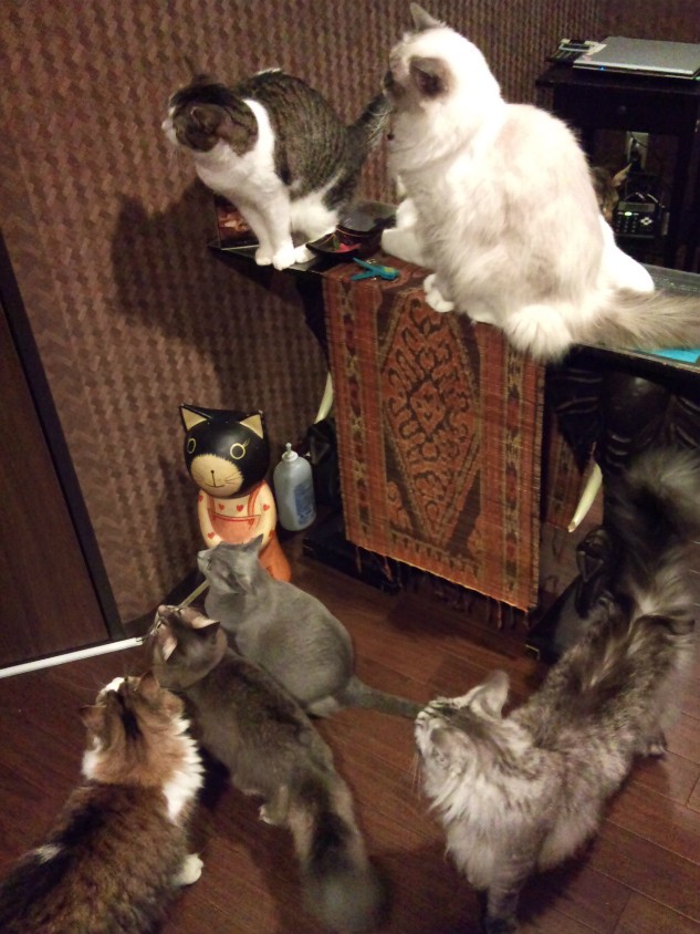 うちの猫たちもおやつ食べててもこんな感じですね。