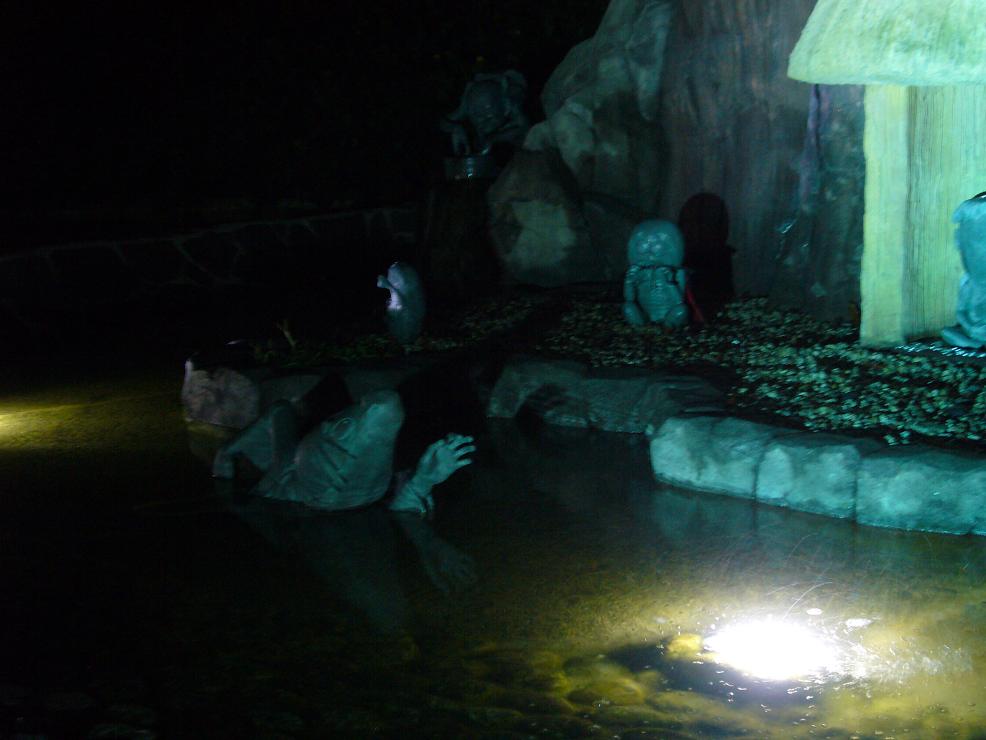 そしてここは妖怪神社です。ここも当然不気味に光ってました。