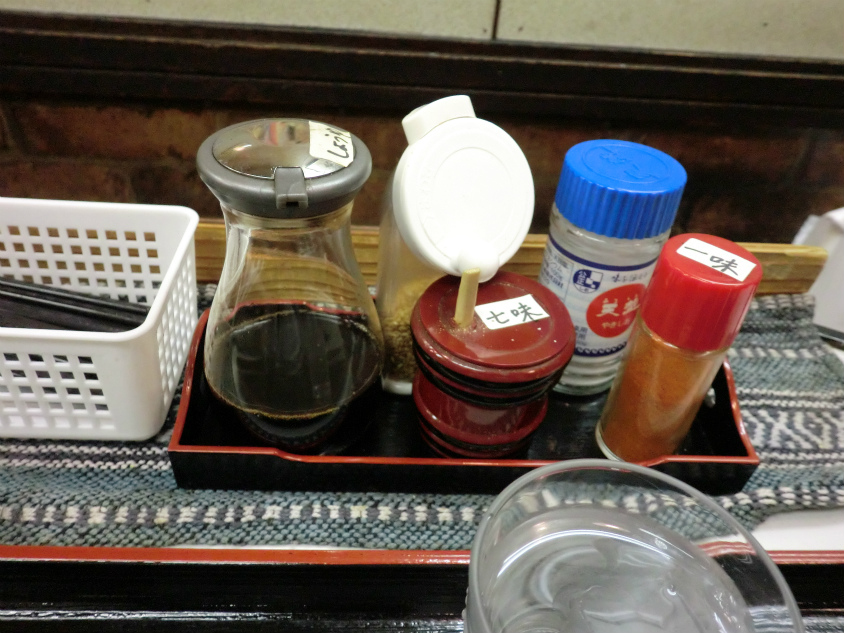 注文を済ませて、卓上を見ると七味などとともに塩がありました。