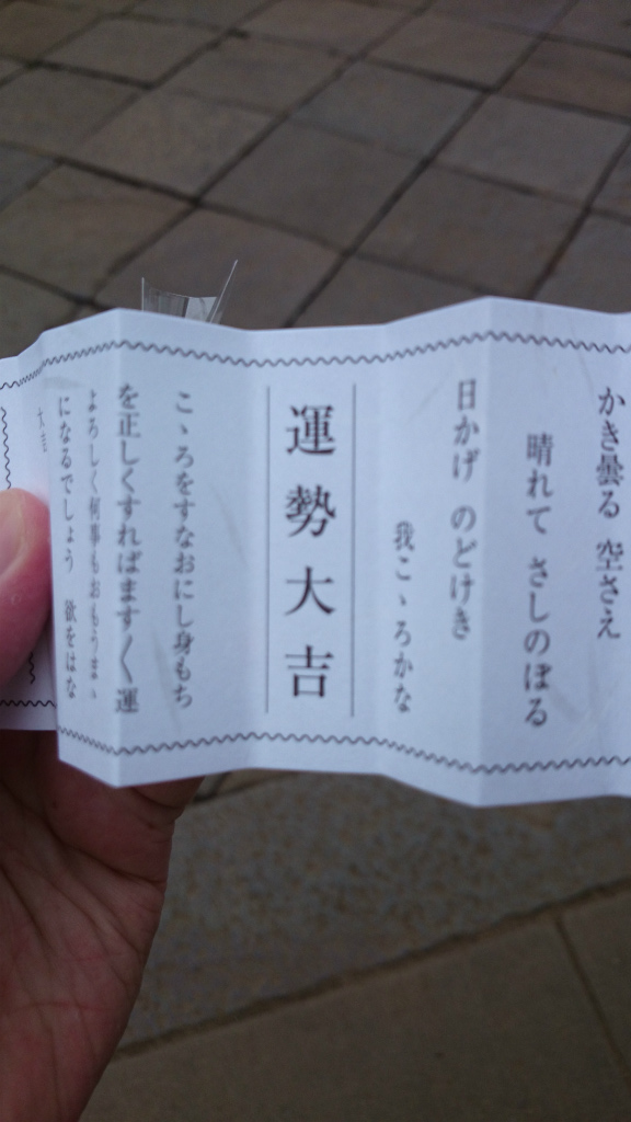 僕は今までの人生で片手で数えられるほどしかおみくじを引いたことが無いんですけど大吉は初めてです。