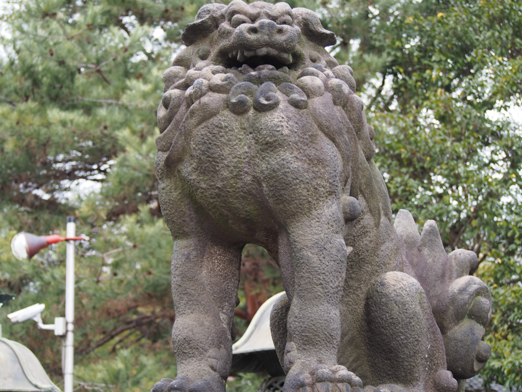 後やたらと胸肉がパンパンの狛犬です。よく見る狛犬はもっと細いと思うんですけど面白いですね。