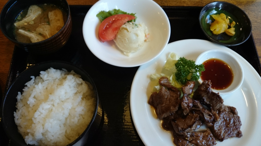 定食の内容は焼肉と味噌汁、ご飯、つけもの、サラダと他のものと一緒ですね。当たり前かw