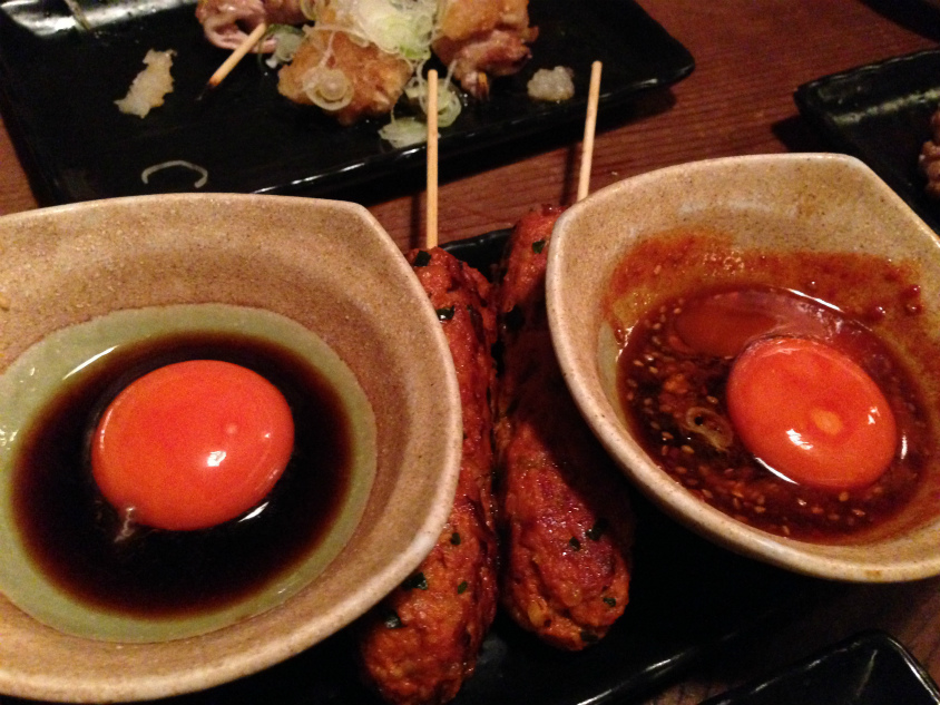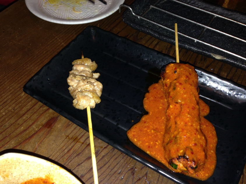 次はつくね系が出てきました。普通のタレと辛いタレがあって食べ比べてみました。